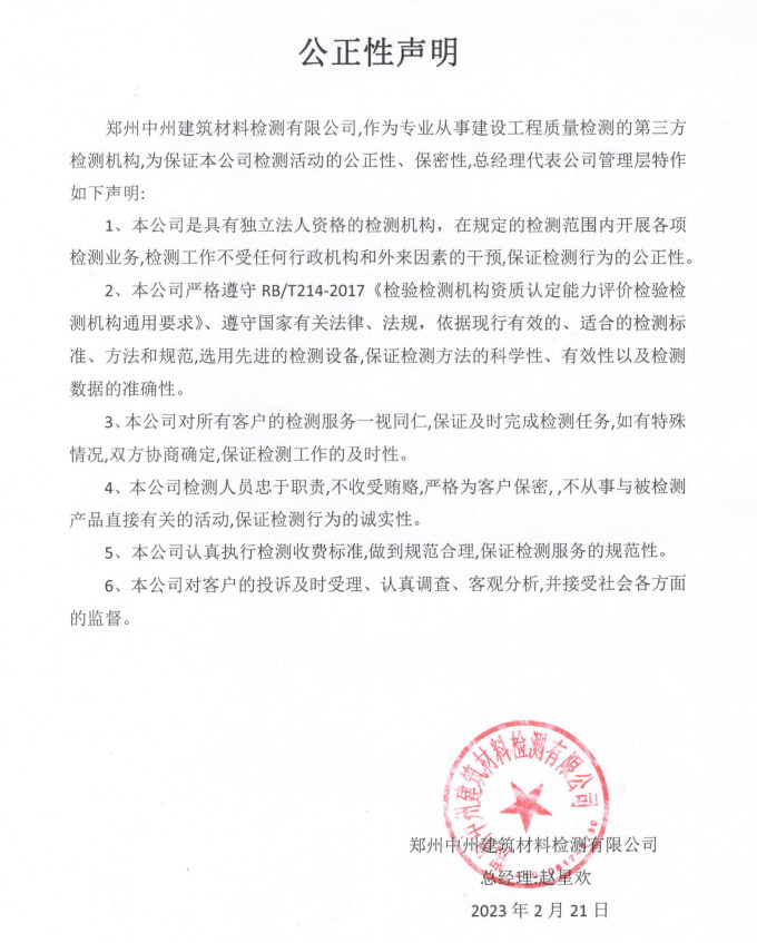 通過河南省質(zhì)量技術(shù)監(jiān)督局計量認證、河南省住房和城鄉(xiāng)建設廳批準,具有獨立法人資格的第三方檢測機構(gòu)。
